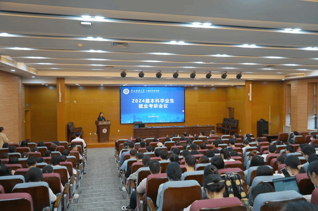 5月30日下午,计算机科学学院2024届本科毕业生就业考研专题会议在文汇楼C段二层报告厅召开。学院党委负责人张艳兵、党委副书记郭康凌、副院长李鹏,2024届本科生班主任郝飞、辅导员陈坤正和全体2024届本科毕业生参加会议。