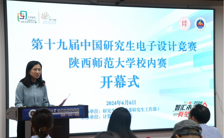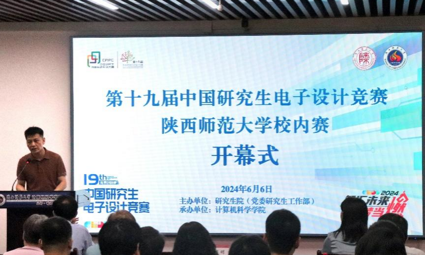 6月6日下午,第十九届中国研究生电子设计竞赛陕西师范大学校内赛在文津楼3425报告厅举办。本次研究生电子设计竞赛陕西师范大学校内赛由研究生院(党委研究生工作部)主办、计算机科学学院承办。党委研究生工作部部长王耀明、计算机科学学院院长姚若侠、党委书记张艳兵,物理学与信息技术学院党委副书记高霏、辅导员王红伟,计算机科学学院党委副书记郭康凌、辅导员袁珂月,两个学院评审专家张小凤、王晅、辛云宏、葛宝、孙奕菲、张玉梅、郝飞、程适、任杰及36支参赛队伍学生参加此次开幕式。