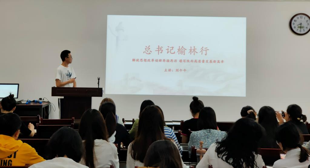 首先,由刘午牛同志给支部党员带来题为“总书记榆林行”的微党课,以习近平总书记的榆林之行的足迹路线为线索,其带领同志们回顾了杨家沟革命旧址、十二月会议、中共七大、绥德地委旧址等一系列革命旧址和重要会议。