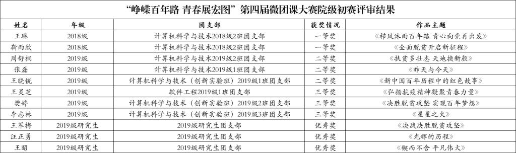 附件: “峥嵘百年路 青春展宏图”第四届微团课大赛计算机科学学院初赛评审结果