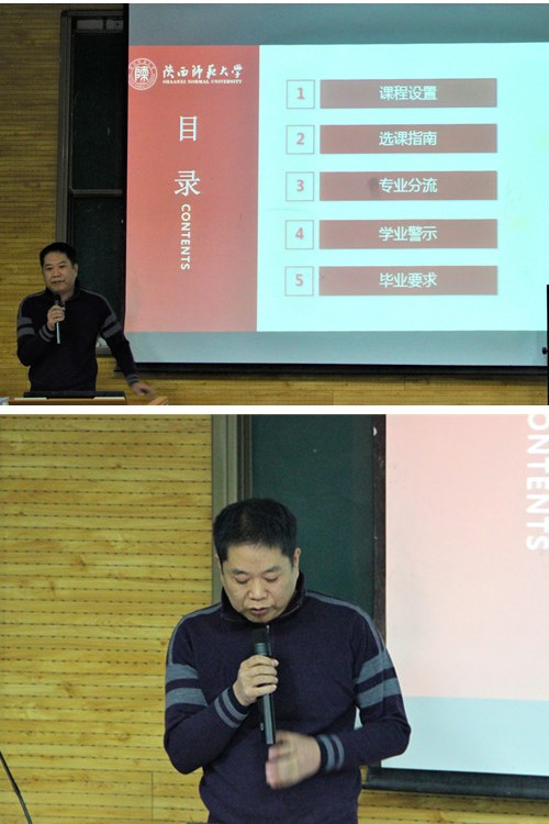 讲座在同学们热烈的掌声中开始,朱炜老师从本科生课程设置,选课指南,专业分流,学业警示制度,本科生毕业要求五个方面为同学们介绍了计算机科学学院本科生学业制度。朱炜老师首先为同学们介绍了计算机科学学院的本科2+2人才培养模式和课程结构,继而介绍了专业课程设计和学分学时比例。其次,朱炜老师从选课角度为同学们提供了一份生动实用的“选课指南”,包括怎么选课,选课原则,选什么课,选课内容等等方面。然后,朱炜老师给同学们分享了师范专业和非师范专业不同的专业分流原则和跨大类转专业原则。接着,朱炜老师为同学们解读了陕西师范大学本科生学业警示实施办法,包括留级预警,留级重读两种,为同学们的学习生活敲响了警钟。最后,朱炜老师分别分享了计算机科学学院计算机科学与技术(师范)专业,计算机科学与技术(创新实验班)专业,软件工程专业,人工智能专业四大专业的毕业要求。朱炜老师语言风趣幽默,现场气氛十分热烈,同学们收获颇丰。