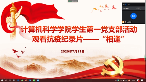 7月11日晚七点,我院学生第一党支部于腾讯会议在线上举行观看“抗疫纪录片——相逢”主题党日活动,学生第一党支部书记陈应权和支部全体党员参与了此次活动。活动由第三党小组组长李雨晨同志主持。