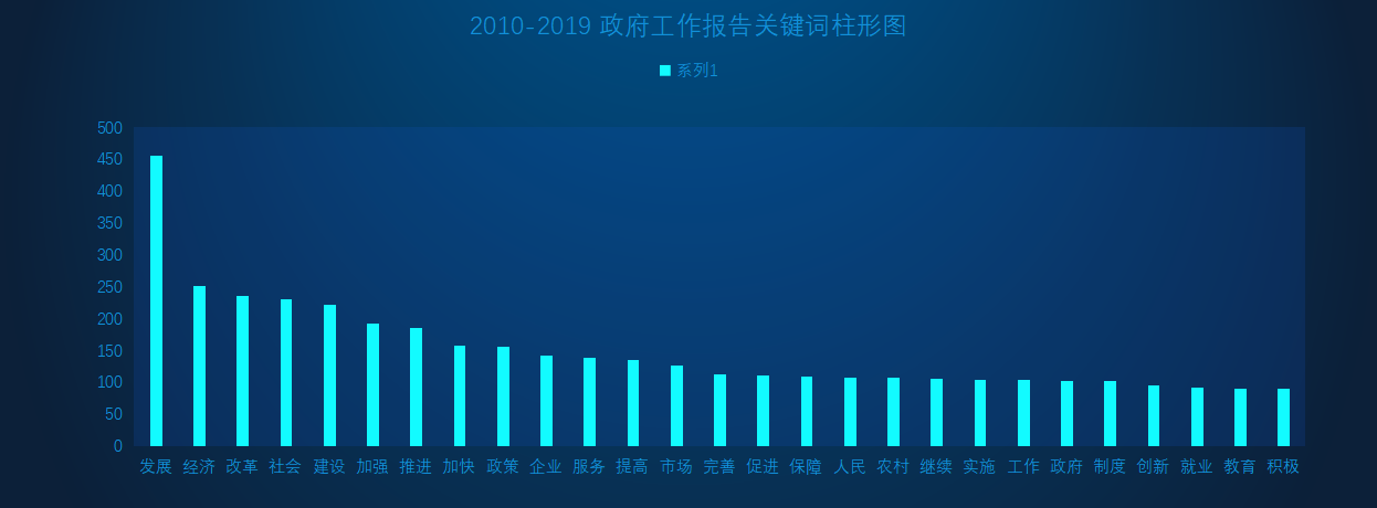 首先,刘国伟带领大家学习解读了《2020年国务院政府工作报告》的主要内容,他将报告的八个部分浓缩为两点,分别从 “2019年和今年以来工作回顾”和“今年发展主要目标和下一阶段工作总体部署”进行讲解展示,并结合计算机的专业优势,通过数据分析统计对报告中的专有名词进行讲解,结合词云和柱形图进行直观展示,帮助大家理解记忆。
