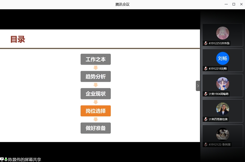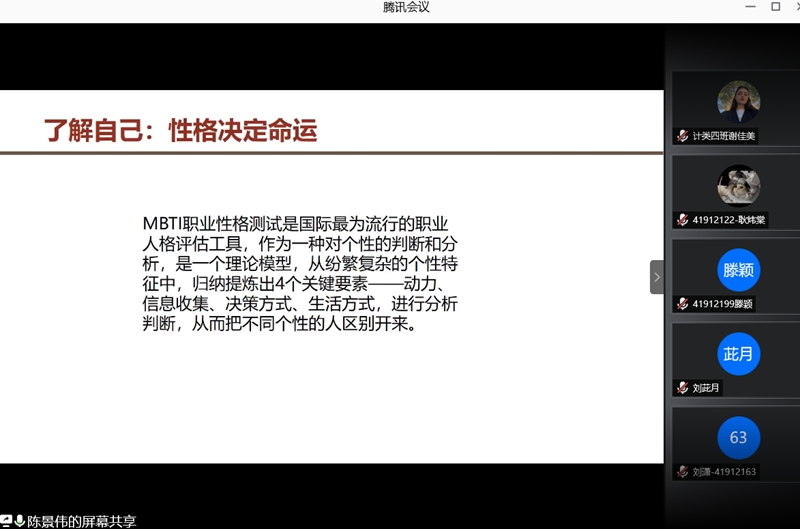 为引导非师范本科生明确职业分类,了解专业发展现状及前景,提前做好个人发展规划,6月7日晚7时,龙8在线登录官网-龙8(中国)本科生举行了“职业分类与专业发展”主题线上指导课程。龙8在线登录官网-龙8(中国)党委副书记袁冰、副院长马苗和联想战略总监陈景伟受邀出席,2019级计算机类全体同学以及部分2017、2018级本科生共计两百余人参加了本次会议,会议由2019级辅导员崔瑜璠主持。