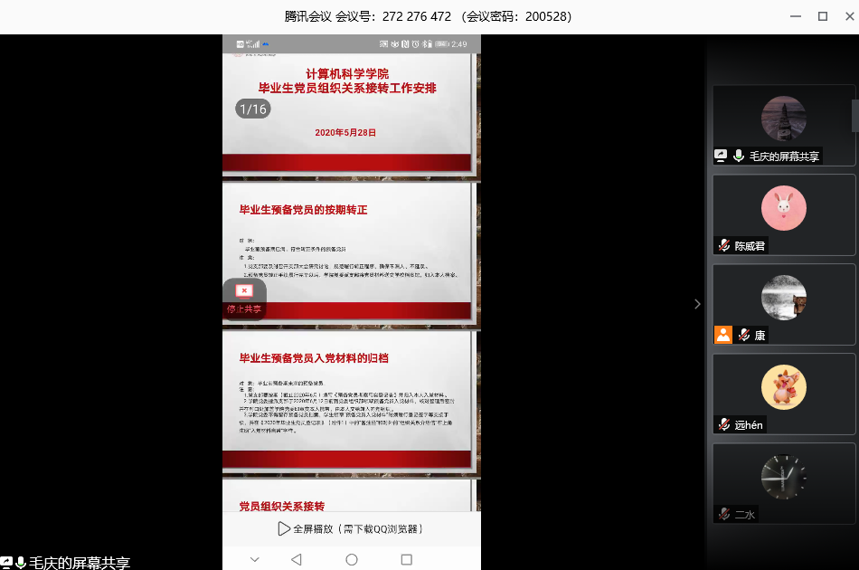 为加强毕业生党员教育管理,做好疫情防控期间毕业生党员组织关系转接工作,确保2020届毕业生党员组织关系顺利转接,根据学校相关工作部署安排,龙8在线登录官网-龙8(中国)于5月28日下午在腾讯会议平台组织召开2020届毕业生党员组织关系转接工作会议。党委副书记袁冰、本科生支部书记毛庆、研究生支部书记皮安琪、刘亚灵及全体本科生、研究生毕业生党员参加了会议。会议由学院党委组织员郭康凌主持。