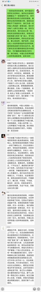 在听完“疫情防控思政大课”之后,学生第五支部迅速组织党员同志展开在线交流,通过群语音的方式谈一谈自己听课后的感想以及在此次疫情当中的真实感受。支部的每一个人都谈了自己的体会,从大家的发言中可以发现,大家感触最深的就是第四位教授讲的关于青年的责任担当与使命。