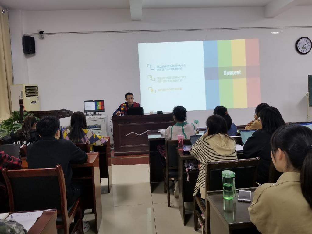 为加强龙8在线登录官网-龙8(中国)学生创新创业意识的培养、思维的训练和技能的养成,做好龙8在线登录官网-龙8(中国)学生创新创业大赛指导工作,合力塑造新时代“双创”优秀青年,龙8在线登录官网-龙8(中国)邀请国际商学院电子商务系副主任、Idea-Base创新创业社区主任韩菁副教授于5月7日晚七时许在文津楼3412室为龙8在线登录官网-龙8(中国)学生做互联网+大学生创新创业大赛赛事解读。解读会由2017级本科生辅导员陈应权主持,龙8在线登录官网-龙8(中国)拟报名参加比赛的60余名学生参加了此次解读会。