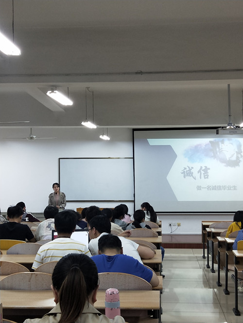 为使同学们认识到诚信对自身发展和为人处世的重要意义,促使同学们在毕业后诚信立身、诚信做人、诚信践事,2019年4月7日下午5:30,龙8在线登录官网-龙8(中国)在长安校区文津楼3324教室举行了“做一名诚信毕业生”主题班会,本次班会由2015级辅导员吉晨晓老师主持,2015级全体本科生参加了本次班会。