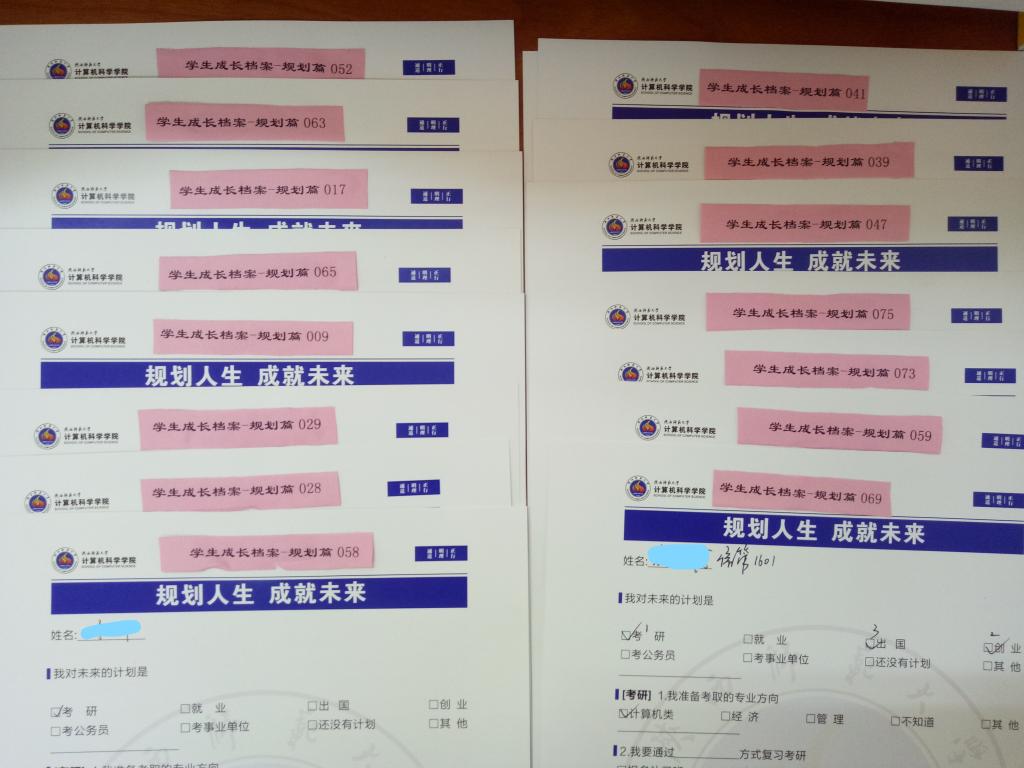 活动伊始,陈子桐展示了哈佛大学关于目标与人生25年的跟踪调查,结果表明越有目标的人越能取得更优秀的人生现状,强调了规划对人生的重要性和必要性。会上全体成员观看了学院“勇立鸿鹄志,誓做奋斗者”优秀学子宣传视频,视频中展现了龙8在线登录官网-龙8(中国)青年学子顽强拼搏、自强不息的精神风貌,为大家树立了朝着目标努力拼搏的优秀榜样。在思想交流与分享环节,任欣和钟雨森同学表达了对优秀学子的肯定与欣赏,同时意识到人生需要详细的规划,身为计科学子需要拼搏进取、追求美好。活动期间,在场的同学认真填写了计算机科学学院学生成长档案(规划篇),为学院更好了解并有针对性地进行规划指导提供了数据依据。郭康凌向大家介绍了近五年来学院非师范生、研究生的就业情况,从企事业单位选拔人才的标准、不同岗位的素质要求等方面分析了两个专业考研的必要性,强调了每位同学必须要明确个人的人生规划,树立适合自己的目标,将精力放在学业与个人发展上,为升学就业选择积蓄力量。