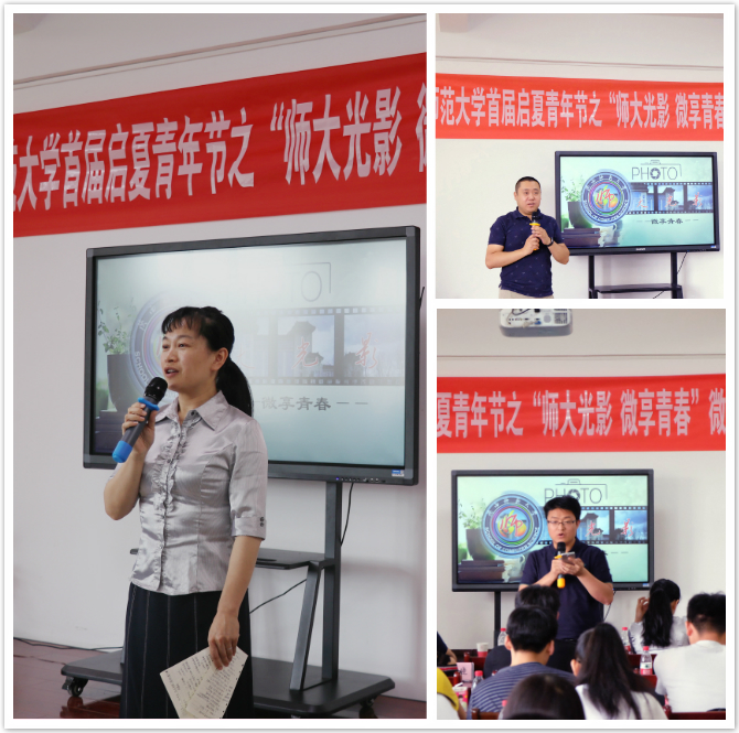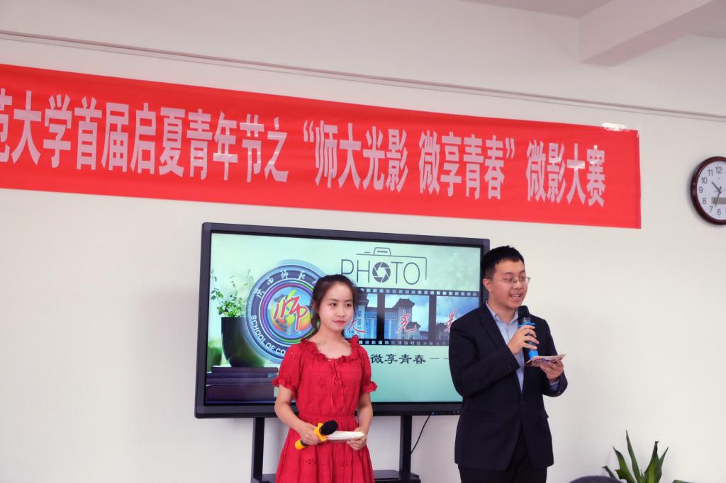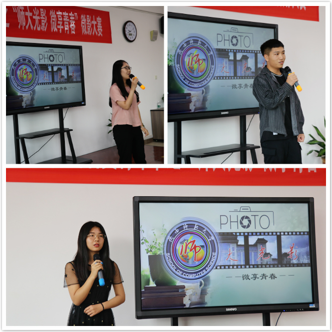 为进一步加强我校文化建设,展示我校师生的青春与活力,鼓励青年学子用摄影记录生活、发现美好,6月3日上午,由陕西师范大学校团委主办、计算机科学学院计算机科学协会、新闻中心承办的“师大光影 微享青春”主题微影大赛决赛在计算机科学学院报告厅举办。我校团委副书记王阳阳、普凡信息技术有限公司总经理黄健、计算机科学学院党委副书记袁冰、副教授席政军、院团委书记郭康凌、各年级辅导员出席活动担任评委,学院10位学生干部担任大众评审。计算机科学学院学生郭龙飞、李嘉琪主持了本次大赛。我校教育学院、文学院、数学与信息科学学院、计算机科学学院部分同学参加了本次活动。