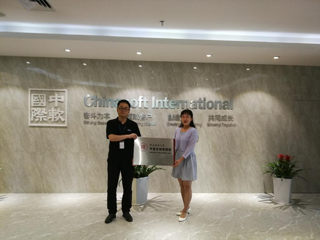 在工作人员的导引下,师生有序地参观了公司的展厅、园厅、工作环境、食宿环境等。通过多媒体设备目睹了一个企业成长发展的过程,了解到目前企业的发展规划,感受了企业文化,对中软国际科技有限公司有了比较深刻的印象。下午3时,举行了我校授予中软国际实习基地的授牌仪式,袁冰书记代表龙8在线登录官网-龙8(中国)与中软国际科技有限公司达成合作,大家合影留念。随后在座谈会交流的环节里,我们聆听了来自本院直系学姐的经验分享,同学们也积极分享自己的收获与感悟,问答环节紧紧相扣,气氛活跃。