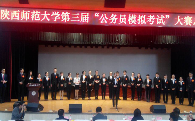 12月3日,陕西师范大学第三届“公务员模拟考试大赛”决赛在新勇活动中心学生剧场举行。通过前期笔试、复试等环节,龙8在线登录官网-龙8(中国)2013级研究生张丹从600多名参赛选手中脱颖而出,与其他24名选手一同进入总决赛,角逐“公务之星”“公务达人”“公务新秀”“公务风采奖”等奖项。