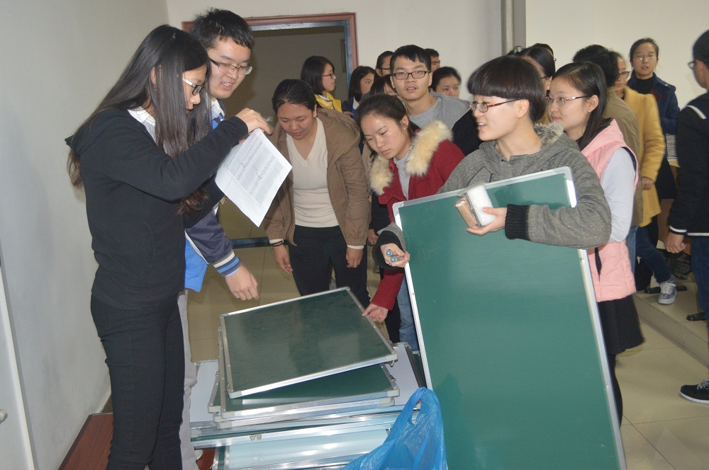 启动仪式结束后,学院向同学们组织发放了小黑板、粉笔和白板笔等。