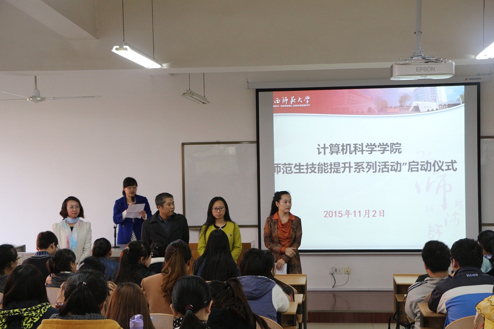 11月2日下午16:30,龙8在线登录官网-龙8(中国)“师范生技能提升系列活动”启动仪式在文津楼219教室举行。学院党委副书记袁冰、副院长马苗、团委书记胡雯洁、教学秘书朱炜、2012级辅导员张冲、2013级辅导员冯倩出席了启动仪式。2013级、2014级计算机科学与技术专业全体免费师范生参加了本次活动。启动仪式由2014级辅导员郭康凌主持。