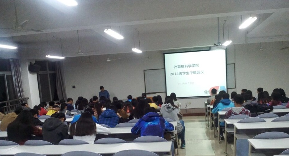 郭康凌对前期工作进行了总结,对下一步工作进行了安排。她要求各班报送数据与材料要及时、规范、准确。随后,她宣读了《计算机科学学院班团干部管理条例》,强调了学生干部的具体工作职责,并对2014级全体学生干部提出了五点要求:一要职责清晰,责任到人;二要严于律己,争做表率;三要团结协作,信息畅达;四要办事公允,以理服人;五要关心同学,熟悉学情。她提到,各班要定时召开班委会,对本班存在的问题及时掌握与解决;定期召开主题班会、主题团日活动,一切活动的举办要围绕优良学风建设、和谐班级建设、提升学生各方面能力的目的而展开。
