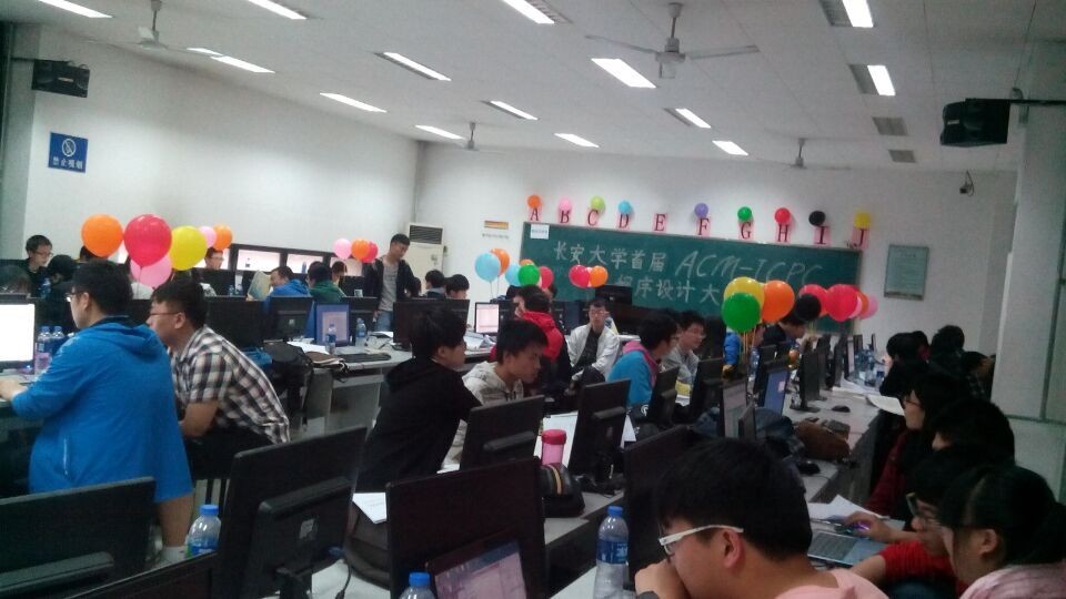 4月18日,长安大学首届ACM-ICPC程序设计大赛在渭水校区举行。该项赛事邀请了包括西安交通大学、西北工业大学、西安电子科技大学、陕西师范大学、西北农林科技大学、西北大学、长安大学等西安知名高校共52支队伍参赛。我校ACM集训队派出了由15人组成的队伍参加了比赛,并取得了令人满意的成绩。