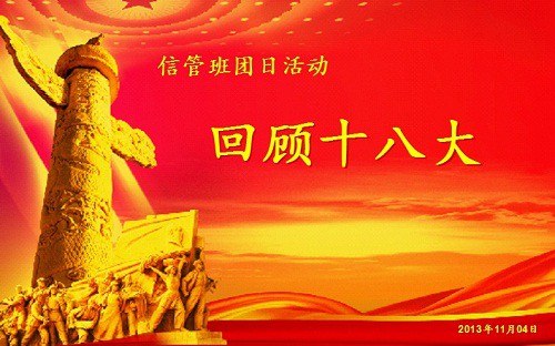 2013年11月4日早上10点龙8在线登录官网-龙8(中国)2011级信管班“回顾十八大”主题团日活动在文津楼608教室拉开帷幕。信管班全体同学参加了此次活动,活动由团支书庞冰欣主持。