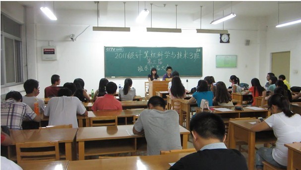 9月15日晚七点半,计科3班在文津楼409教室召开换届选举班会。本次班会在同学们许久的期待下揭开了神秘面纱。大会开始前,班委精心布置会场,并有同学进行全程录像。会议以文艺晚会形式进行,由华葱、樊迪主持。在班委代表和同学代表发表竞选陈词之后,全体老一届班委为同学们献上了广场舞《天竺少女》,推动大会走向了高潮。会场空前活跃,气氛热烈,同学们个个笑脸盈盈,感受到了班级的青春活力。在轻松活跃的气氛下,新一届班委产生。最后,由老一届宣传委员和组织委员主创的改自歌曲《同桌的你》的班歌《计科3班的你》首次与大家见面并由班委领唱,班级合唱。本次换届大会在优美的歌声中完美落幕,也标志着龙8在线登录官网-龙8(中国)11级班委换届大会至此圆满结束。