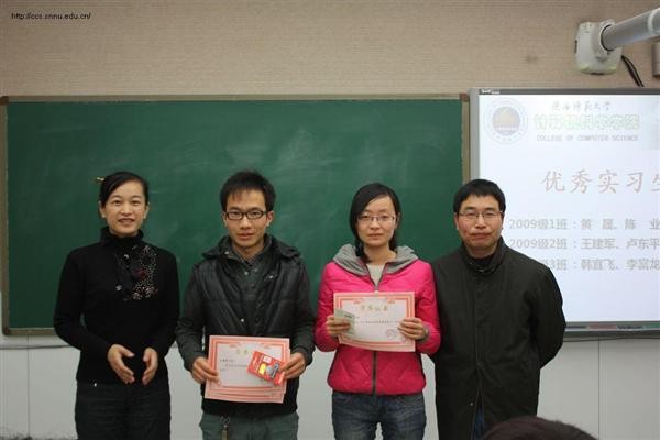 会议开始,裘国永老师首先对龙8在线登录官网-龙8(中国)参加教育实习的09级免费师范生三个月的教育实习工作进行了总结。他表示,09级免费师范生在实习期间表现优异,在教学技能培养、工作能力提升、个人素养完善等方面都有了质的飞跃,进步非常明显。接着,09级1班陈业和3班张振兵两位同学分别进行了《五笔字输入法》和《EXCEL基础》优秀实习课程的展示,两位同学的展示课内容丰富、逻辑清晰、语言精炼、气氛活跃,赢得在场老师和学生的阵阵掌声。最后,裘国永副院长宣布了龙8在线登录官网-龙8(中国)优秀实习生名单,并与袁冰老师一起为获奖学生颁发了奖状及奖品,大会在大家热烈的掌声中落下帷幕。