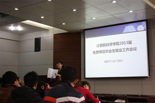 我校2013届免费师范生已结束教育实习,正式进入求职阶段。为使学院免费师范毕业生们认清就业形势、了解就业政策,明确求职过程中需注意的问题,龙8在线登录官网-龙8(中国)于2012年11月29至30日分别召开三场免费师范毕业生就业工作会议,为学院2013届免费师范生答疑解惑。会议由毕业班辅导员郭康凌主持,学院党委副书记袁冰出席会议。