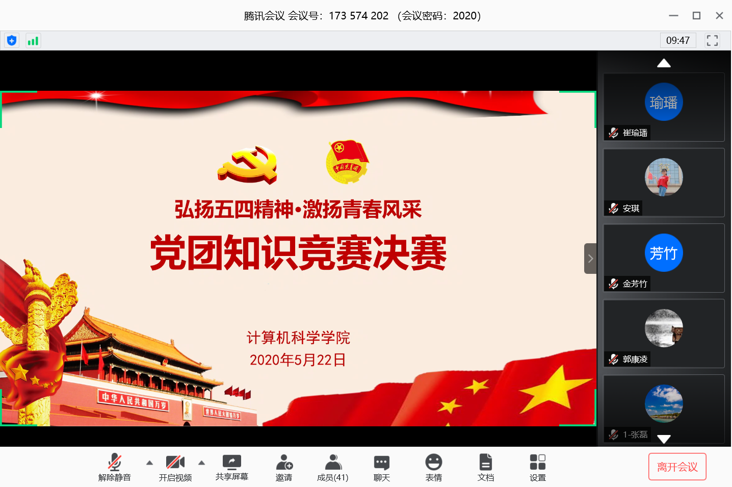 决赛分为两轮,在腾讯会议平台上开展。第一轮为团队赛,共有24道单选题。各参赛团队反应迅速,踊跃参与,在讨论区发送组号进行抢答。经过激烈的比拼,共有15名选手晋级第二轮个人战,选手们轮流回答单选、多选、填空和论述题,刘真、甘毓琪等同学在论述环节的发言旁征博引,充分体现了当代大学生的风采担当与过硬的思想政治素质。全体参赛选手还共同学习了复旦大学中国研究院院长张维为先生的演讲《中国的自信一代》,更加坚定了与时代一起成长、与国家一起崛起的信心。