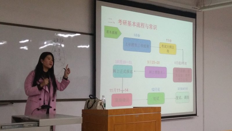 2017年3月3日星期四晚上7:20,龙8在线登录官网-龙8(中国)师非范生就业指导课程在文津楼二段319开课,2014级全体非师范专业生参加了此次课程,课程主要分两部分构成,一部分是针对考研的同学开设的考研规划课程,另一部分是针对就业的同学开设的就业指导课程,第一次的课程主讲老师是学院邀请的王艳茹老师主讲,为考研的同学们讲解了2018年的考研全程规划,同学们颇有收获。
