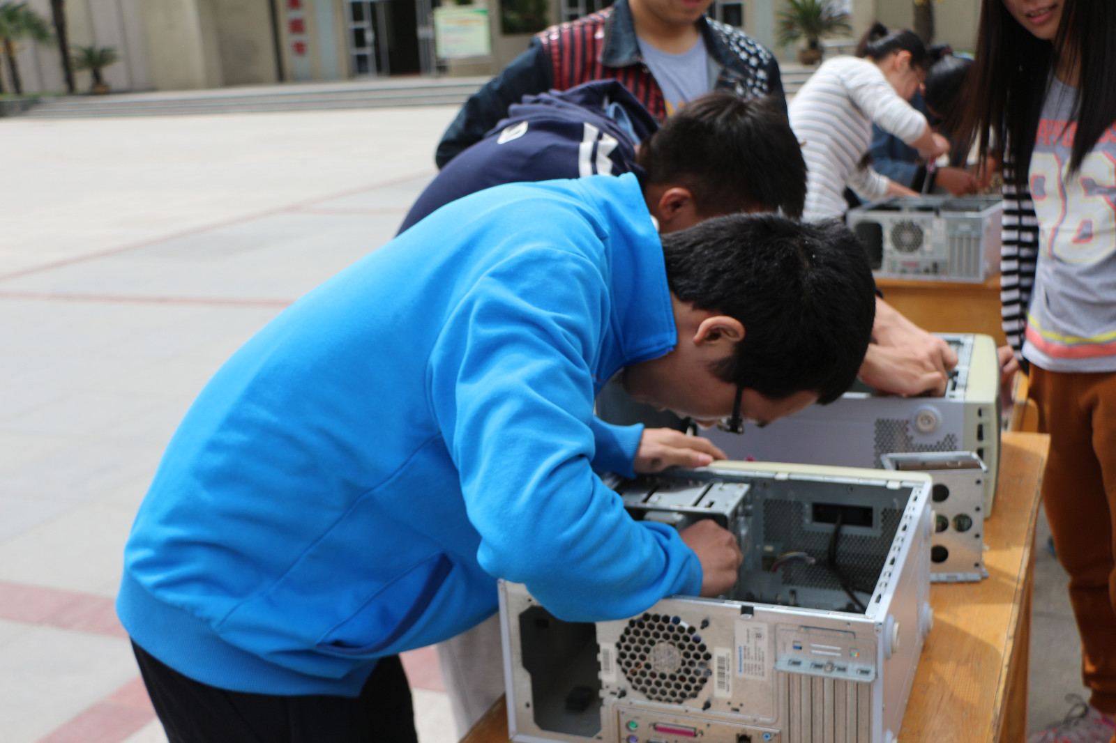 4月17日上午,由计算机科学协会举办的第二届电脑全能王大赛之拆装机比赛,在阳光苑广场顺利举办。电脑全能王大赛分为四个部分的比赛:PS比赛,编程比赛,PPT比赛以及拆装机比赛。作为此次全能王大赛的“重头戏”—拆装机比赛,旨在对电脑主机的实际拆装的情况下提高参赛选手对电脑主机内部构造的理解程度,激发选手兴趣,提高选手们的动手实践能力。