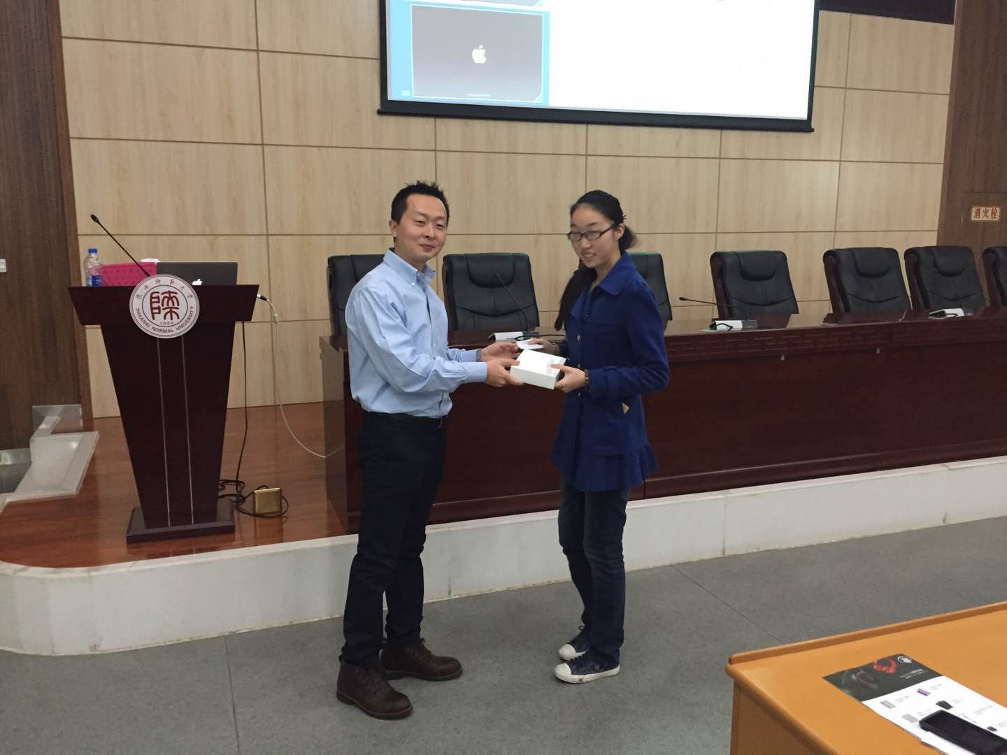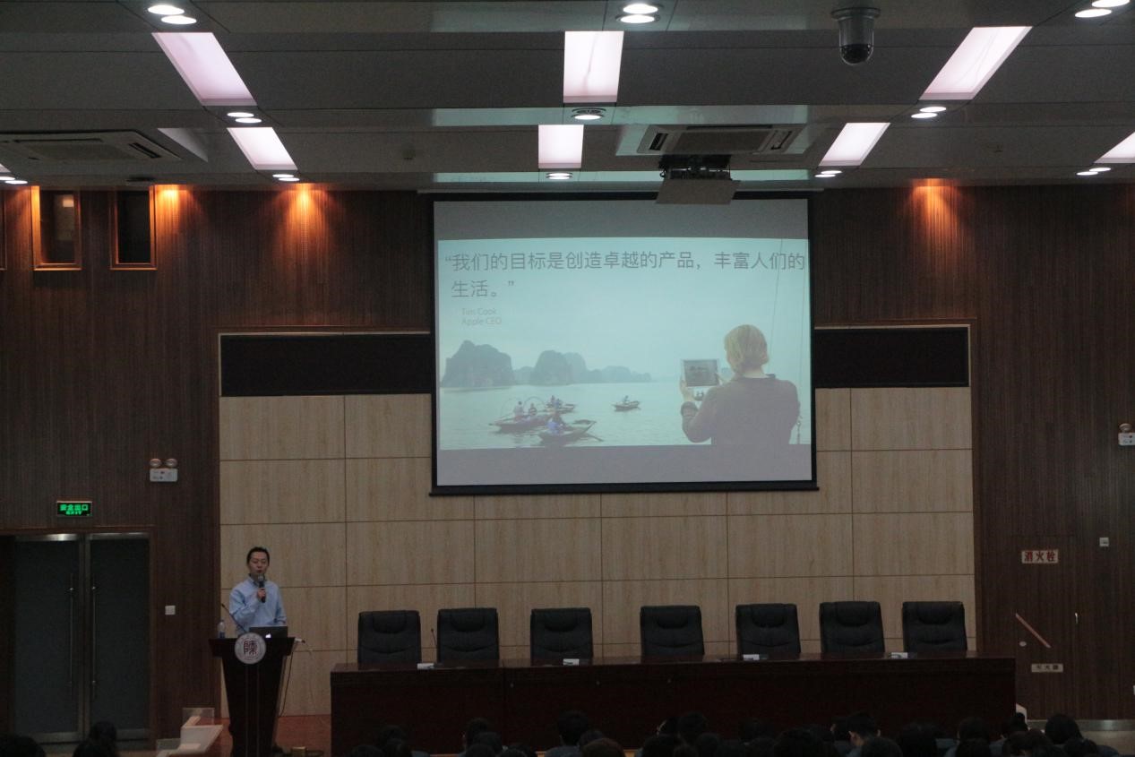 为了解答同学们对苹果产品的疑惑,使同学们了解苹果的新产品,2016年3月24日晚上7点,在陕西师范大学长安校区文澜楼B段一层报告厅举行了苹果专题讲座,讲座由苹果资深讲师孔文达老师主持,主要讲解苹果先进技术及理念。包括龙8在线登录官网-龙8(中国)学生在内的全校共120多人参加了宣讲会。