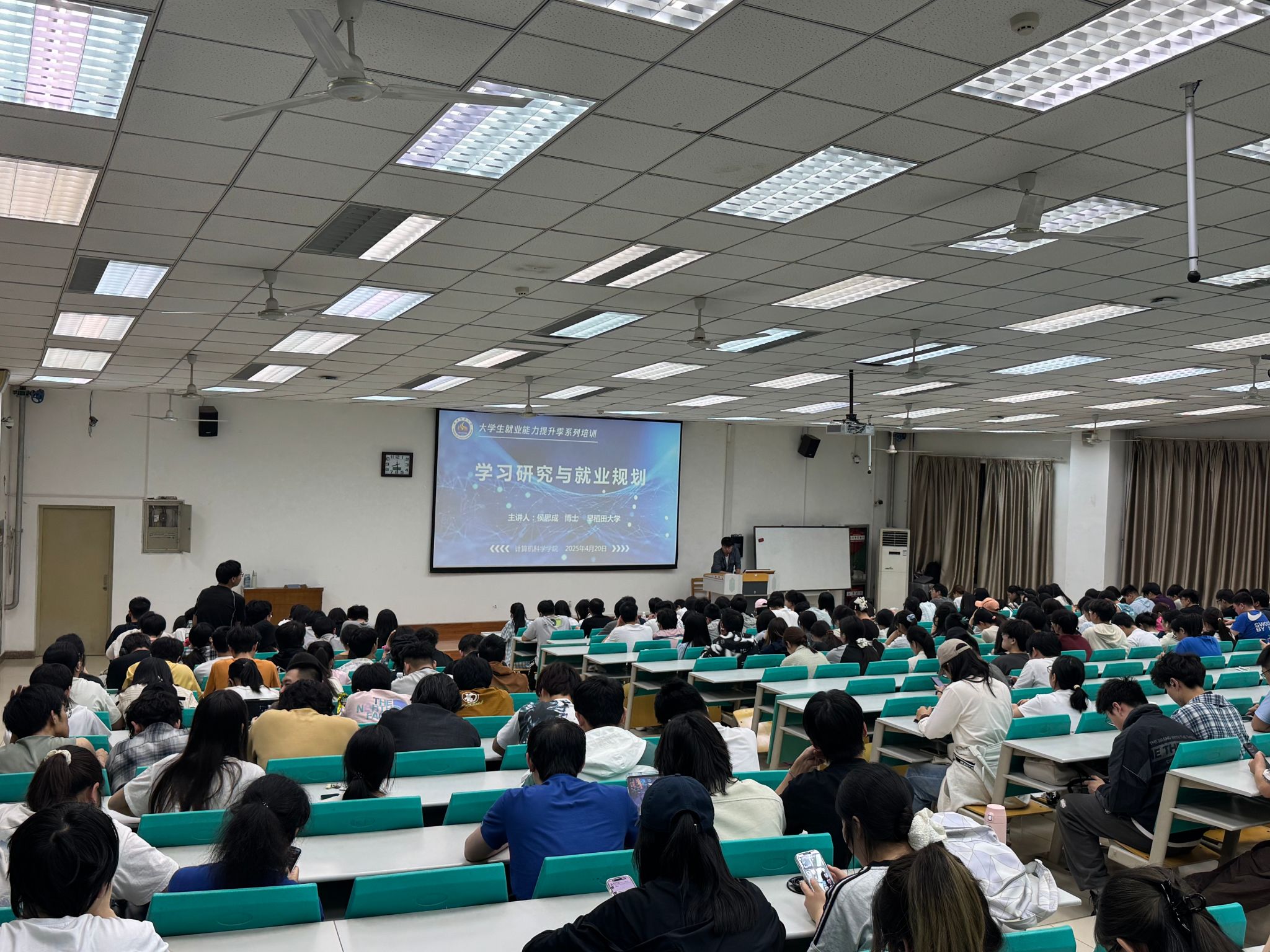 2025年4月20日,龙8在线登录官网-龙8(中国)组织2026届本科生在文津楼4102教室进行考研留学经验交流分享。龙8在线登录官网-龙8(中国)2018届毕业生侯思成老师、2022级班主任程适老师、2026届本科生参加活动,辅导员田海东主持。