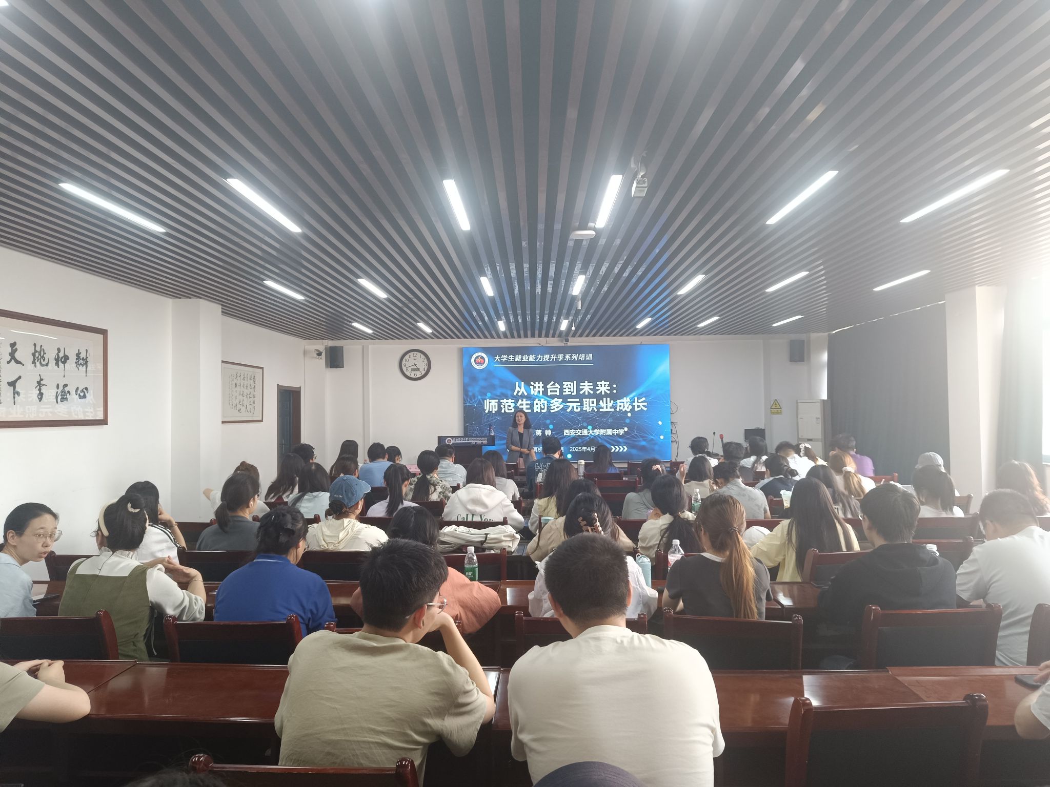 为进一步提升2026届毕业生就业能力,培养正确的就业择业观,2025年4月25日下午,龙8在线登录官网-龙8(中国)在文津楼3425报告厅组织2026届毕业生开展名师谈职业成长分享交流活动。西安交通大学附属中学高级教师、省级学科带头人蒋帅老师和2026届毕业生参加活动,辅导员田海东主持。