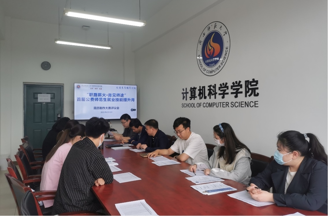 5月13日上午,计算机科学学院“职路薪火·育见师途”公费师范生就业技能提升月系列活动之简历制作大赛评议会在文津楼3434会议室召开。学院党委副书记郭康凌、团委书记何文曦、辅导员田海东、梁星宇、陈坤正、陈子桐、蒋江红、任仰,龙8在线登录官网-龙8(中国)2022届成功签约至西安、成都、昆明、合肥等地五所中小学的本硕毕业生郝坤、钱倩、张东辉、蒋山、陈胥言组成评议小组。郭康凌主持评议会。