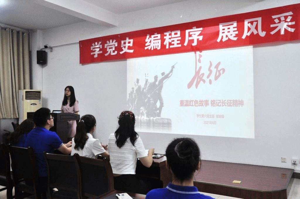 2021年6月30日晚,龙8在线登录官网-龙8(中国)第六党支部在文津楼3412报告厅开展支部书记讲党课活动。支部书记崔瑜璠以“重温红色故事,铭记长征精神”为主题带领支部全体成员探寻红军长征原因,回顾红军长征历程,传承长征精神。