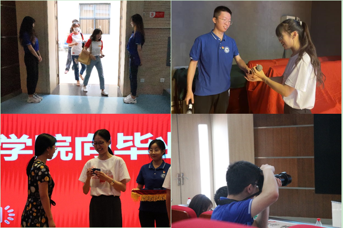 典礼开始后,同志们各司其职,分别在剧场门口引导学生入座在中控室播放毕业典礼的相关视频及资料在后台为表演人员递送演出用具、协助老师们颁发奖品在会场内拍摄活动照片......为典礼的顺利进行保驾护航。